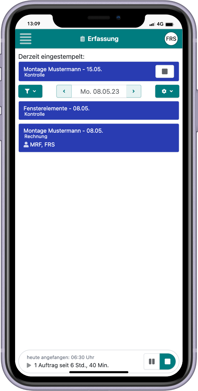 Mit dem Update ist die Zeiterfassung noch einfacher. Deine Mitarbeiter sehen auf einen Blick auf welchen Aufträgen sie eingestempelt sind und wann sie heute angefangen haben.