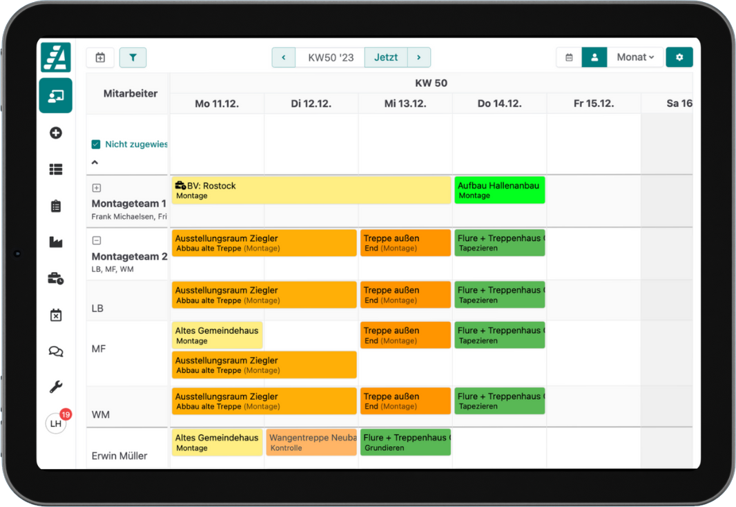 Mit Artesa optimierst du die Mitarbeiterplanung in deinem Handwerksbetrieb: Durch die intuitive Bedienung, effiziente Ressourcenverwaltung und verbesserte Kommunikation steigerst du die Produktivität deines Teams und minimierst Engpässe in der Planung.