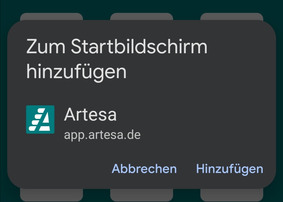 Du findest die Artesa App nun auf dem Startbildschirm deines mobilen Geräts.
