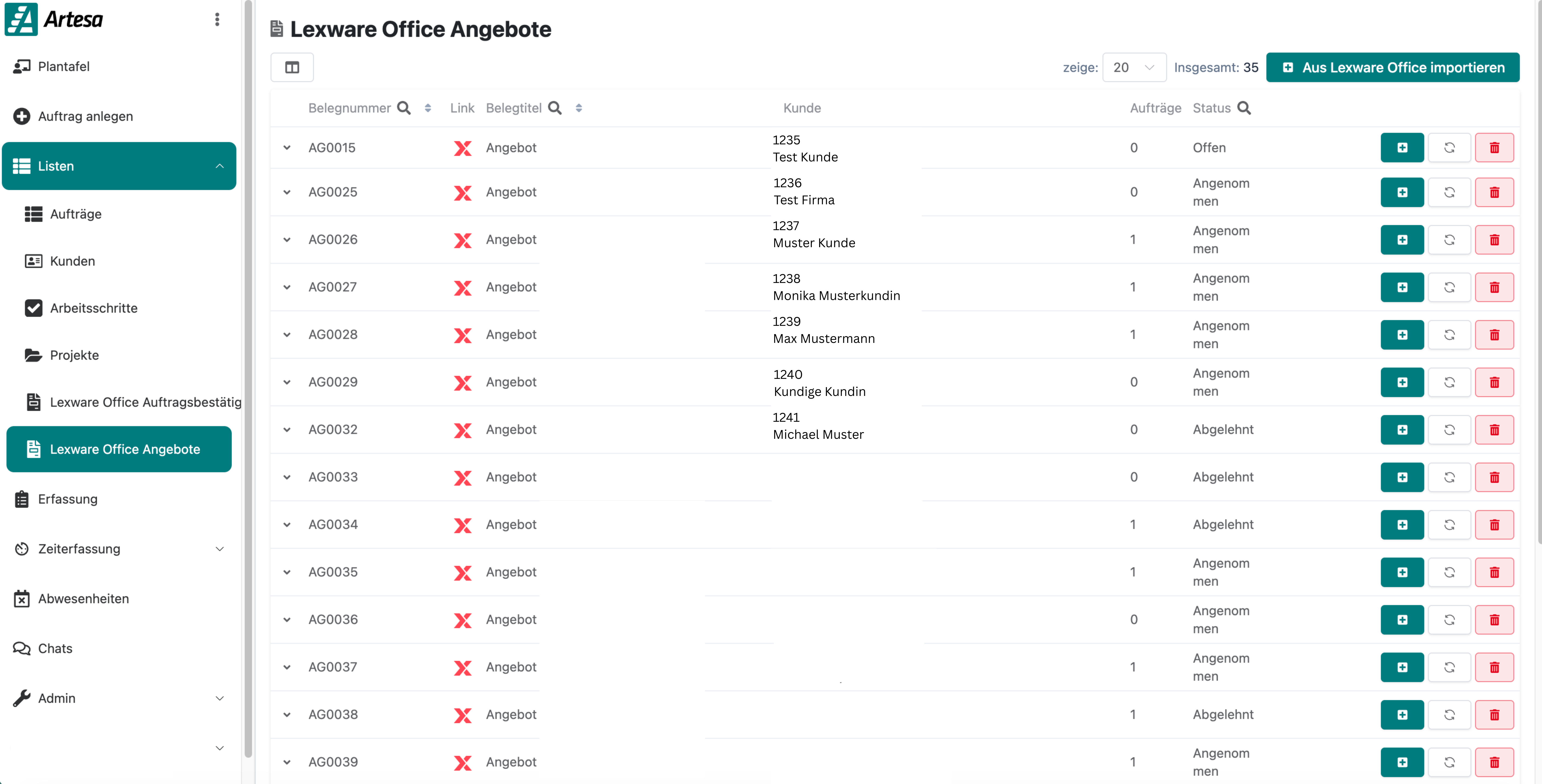 Ist das geschehen hast du als neue Kacheln in den Listen die Lexware Office Auftragsbestätigungen und Angebote.